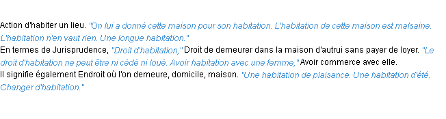 Définition du mot « habitation » par l’Académie Française (édition de 1932).