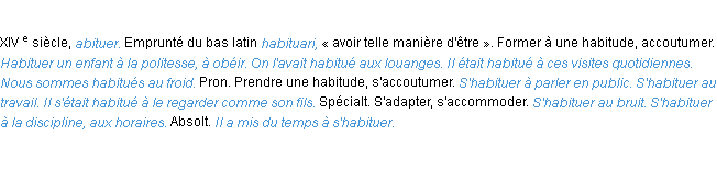 Signification parue en 2009 (source la-definition.fr).Merci à Ambre et Jourdain pour la numérisation du mot habituer.