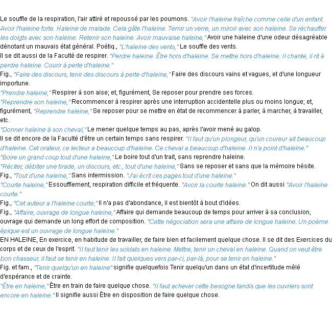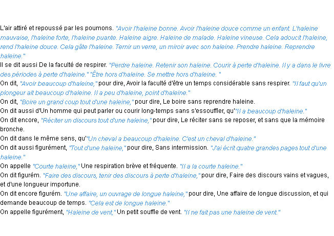 Définition « haleine » du dictionnaire académique Français, parution de l’année 1986.