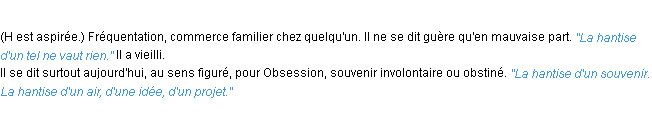 Signification parue en 2009 (source la-definition.fr).Merci à Philippe et Olivie pour la numérisation du mot hantise.