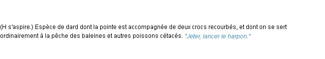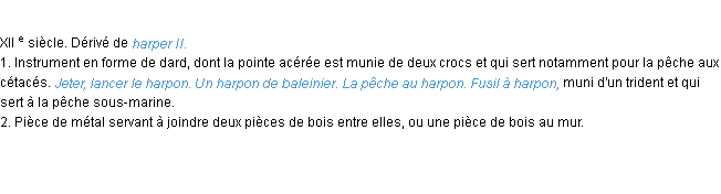 Définition de l’équipe de la-definition.fr (édition de 2009) pour le mot « harpon ».Merci à Théodore et Fifi pour la numérisation du mot harpon.