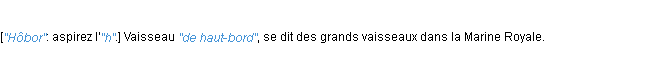 Ancienne signification éditée en 17962 pour le terme « haut-bord » par l’Académie Française.Merci à Jeanne et Sylvie pour la numérisation du mot haut-bord.
