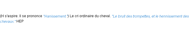 Définition du mot « hennissement » par l’Académie Française (édition de 1932).