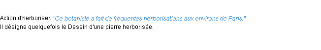 Définition développée dans dictionnaire d’Emile Littré (ancienne édition de 1876).Merci à Dorothée et Gisèle pour la numérisation du mot herborisation.