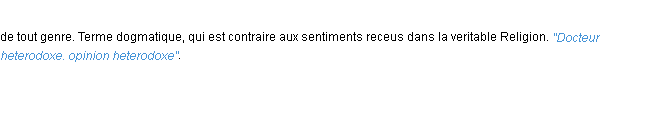 Ancienne signification parue en 1694 dans dictionnaire de l’Académie Française.Merci à Alain et Jacques pour la numérisation du mot heterodoxe.