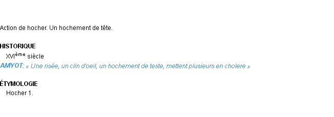 Signification éditée en 1986 pour le terme « hochement » par l’Académie Française.