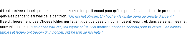 Signification du terme « hochet », parution de 1932, dictionnaire académique Français.