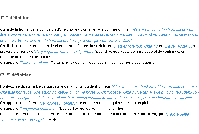 Ancienne définition du mot « honteux » par l’Académie Française (édition de 1835).