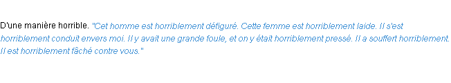 Signification éditée en 1876 pour le terme « horriblement » par Emile Littré.