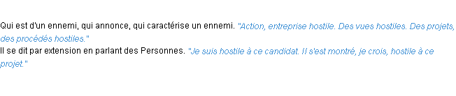 Définition de l’Académie Française (édition de 1932) pour le mot « hostile ».