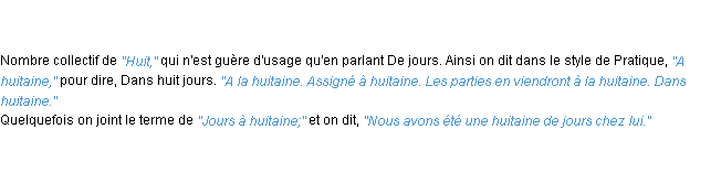 Définition du mot « huitaine » par l’Académie Française (édition de 1932).