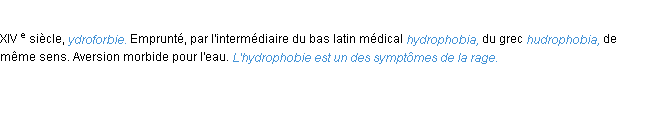 Signification éditée en 1932 pour le terme « hydrophobie » par l’Académie Française.