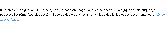 Signification du terme « hypercritique », parution de 1876 (dictionnaire le Littré).