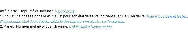 Définition « hypocondrie » du dictionnaire académique Français, parution de l’année 1932.