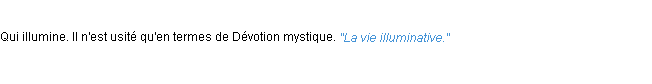 Ancienne définition développée dans dictionnaire académique, 1798.Merci à Nathalie et Gustave pour la numérisation du mot illuminatif.