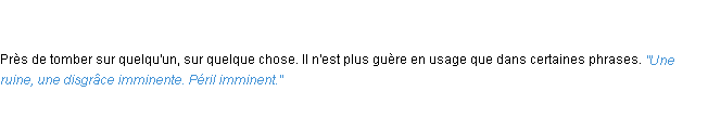 Signification éditée en 1986 pour le terme « imminent » par l’Académie Française.