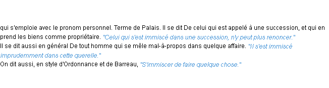 Signification éditée en 1932 pour le terme « immiscer » par l’Académie Française.