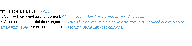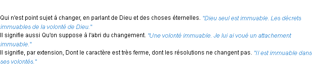 Définition académique pour le terme « immuable » (parue en 1932).