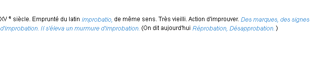 Définition de l’Académie Française (édition de 1932) pour le mot « improbation ».