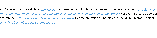 Définition de l’Académie Française (édition de 1932) pour le mot « impudence ».