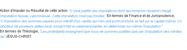 Signification du terme « imputation », parution de 1986, dictionnaire académique Français.