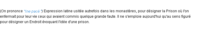 Ancienne définition de « in pace » de source académique (Académie Française, parution de 1835).