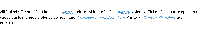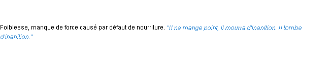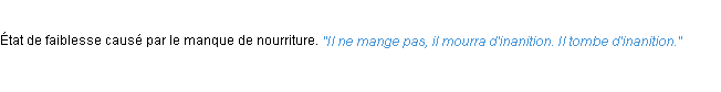 Définition du mot « inanition » par l’Académie Française (édition de 1986).