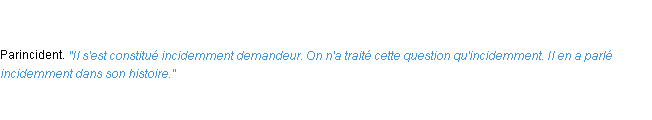 Définition de l’Académie Française (édition de 1986) pour le mot « incidemment ».