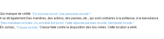 Signification du terme « incivil », parution de 1932, dictionnaire académique Français.