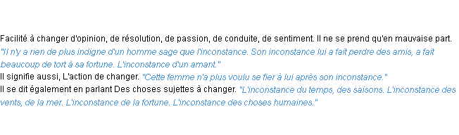 Ancienne signification éditée en 1798 pour le terme « inconstance » par l’Académie Française.