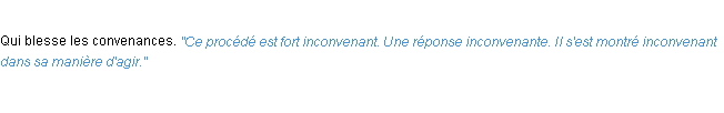 Signification éditée en 1986 pour le terme « inconvenant » par l’Académie Française.