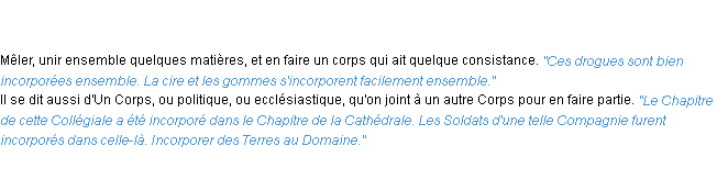Ancienne signification éditée en 1835 pour le terme « incorporer » par l’Académie Française.
