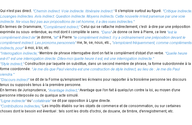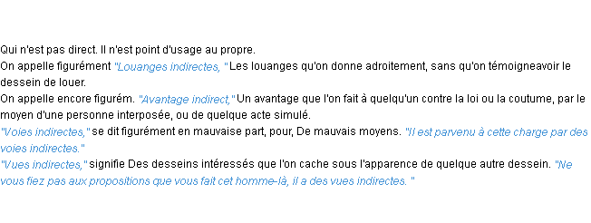 Ancienne définition académique pour le terme « indirect » (parue en 1835).