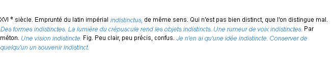 Définition de « indistinct » de source académique (Académie Française, parution de 1986).