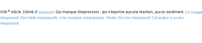 Définition du mot « inexpressif » (source wiktionary 2011).Merci à Berthe et Gaspard pour la numérisation du mot inexpressif.