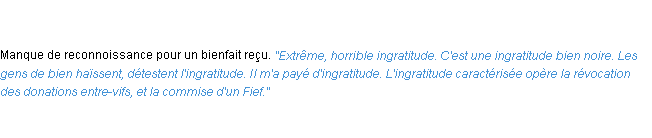 Ancienne définition de « ingratitude » de source académique (Académie Française, parution de 1835).