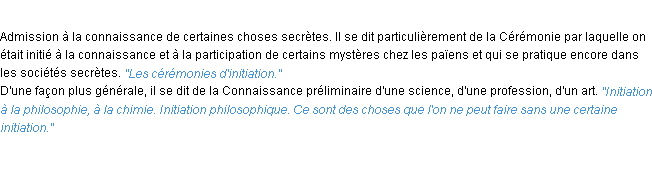 Ancienne définition « initiation » du dictionnaire académique Français, parution de l’année 1798.Merci à Noel et Héloïse pour la numérisation du mot initiation.
