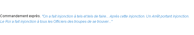 Ancienne signification développée en 1798 par l’académie Française (ACAD - 1798).Merci à Madeline et Gwenaelle pour la numérisation du mot injonction.