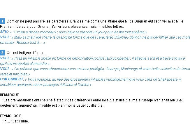 Définition du mot « inlisible » par Emile Littré (édition de 1876).