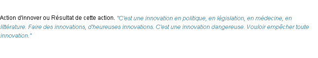 Ancienne signification éditée par l’Académie Française, année 1798.Merci à Gervais et Placide pour la numérisation du mot innovation.