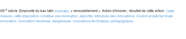 Signification du terme « innovation », parution de 1986, dictionnaire académique Français.