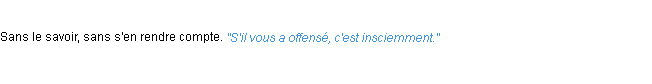Ancienne signification éditée en 1798 pour le terme « insciemment » par l’Académie Française.