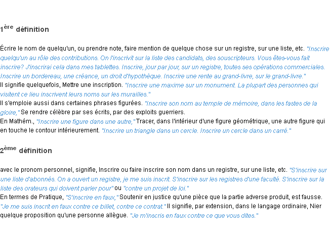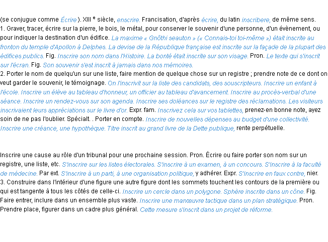 Signification éditée en 1986 pour le terme « inscrire » par l’Académie Française.