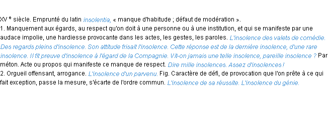 Signification éditée en 1986 pour le terme « insolence » par l’Académie Française.