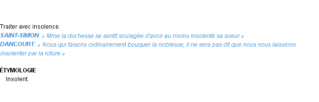 Signification éditée en 1876 pour le terme « insolenter » par Emile Littré.