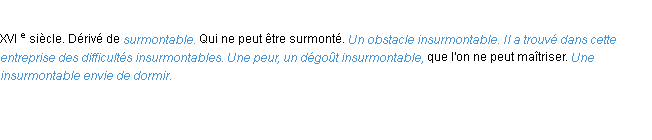Définition académique pour le terme « insurmontable » (parue en 1932).