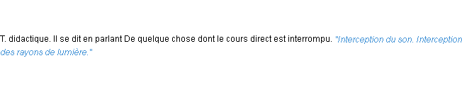Définition du mot « interception » par Emile Littré (édition de 1876).Merci à Françoise et Micheline pour la numérisation du mot interception.