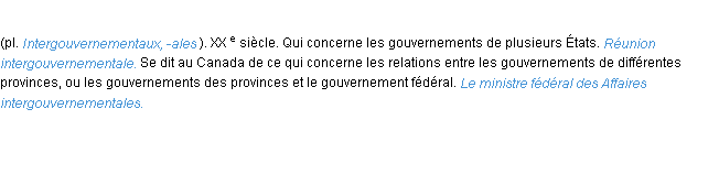 Signification du terme « intergouvernemental », parution de 1986, dictionnaire académique Français.Merci à Hercule et Josette pour la numérisation du mot intergouvernemental.