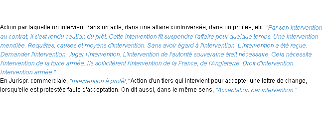 Définition de « intervention » de source académique (Académie Française, parution de 1932).