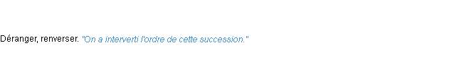 Ancienne signification éditée en 1798 pour le terme « intervertir » par l’Académie Française.Merci à Marise et Honoré pour la numérisation du mot intervertir.